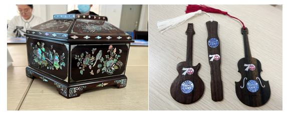 螺钿技艺经典作品及同学们亲手制作学校70周年特别版螺钿檀木书签