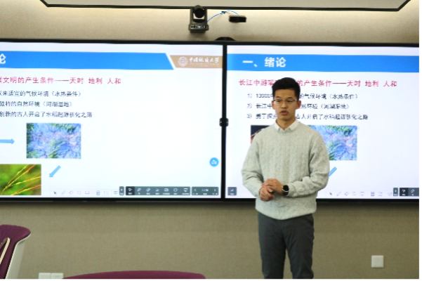 三位同学汇报结束后,现场的老师同学们围绕长江流域的环境变迁和长江文化的活化发展开展了热烈的讨论。顾延生教授详细阐释了长江流域先民在自然环境变迁中逐步完成水稻驯化的原因和进程,强调了长江流域稻作文化、水文化、季风文化有别于其他区域文化的独特属性,深刻总结了长江文化与环境变迁的内在联系。李江敏教授以“谈到长江文化你想到了什么”为引,引导同学们从自然和人文的学科交叉视角思考在建设长江国家文化公园中如何打造带有辨识度、引发认同感、象征国家民族精神的文化符号,从而挖掘长江文化基因,实现长江文化的创造性转化和创新性发展。经济管理学院和伟德bv国际体育的同学们在交流中纷纷表示,通过这次学习他们对于自然和人文学科不同的研究重点、研究方法、研究范式都有了新的认知,进一步拓展了自身对未来研究方向的思考。