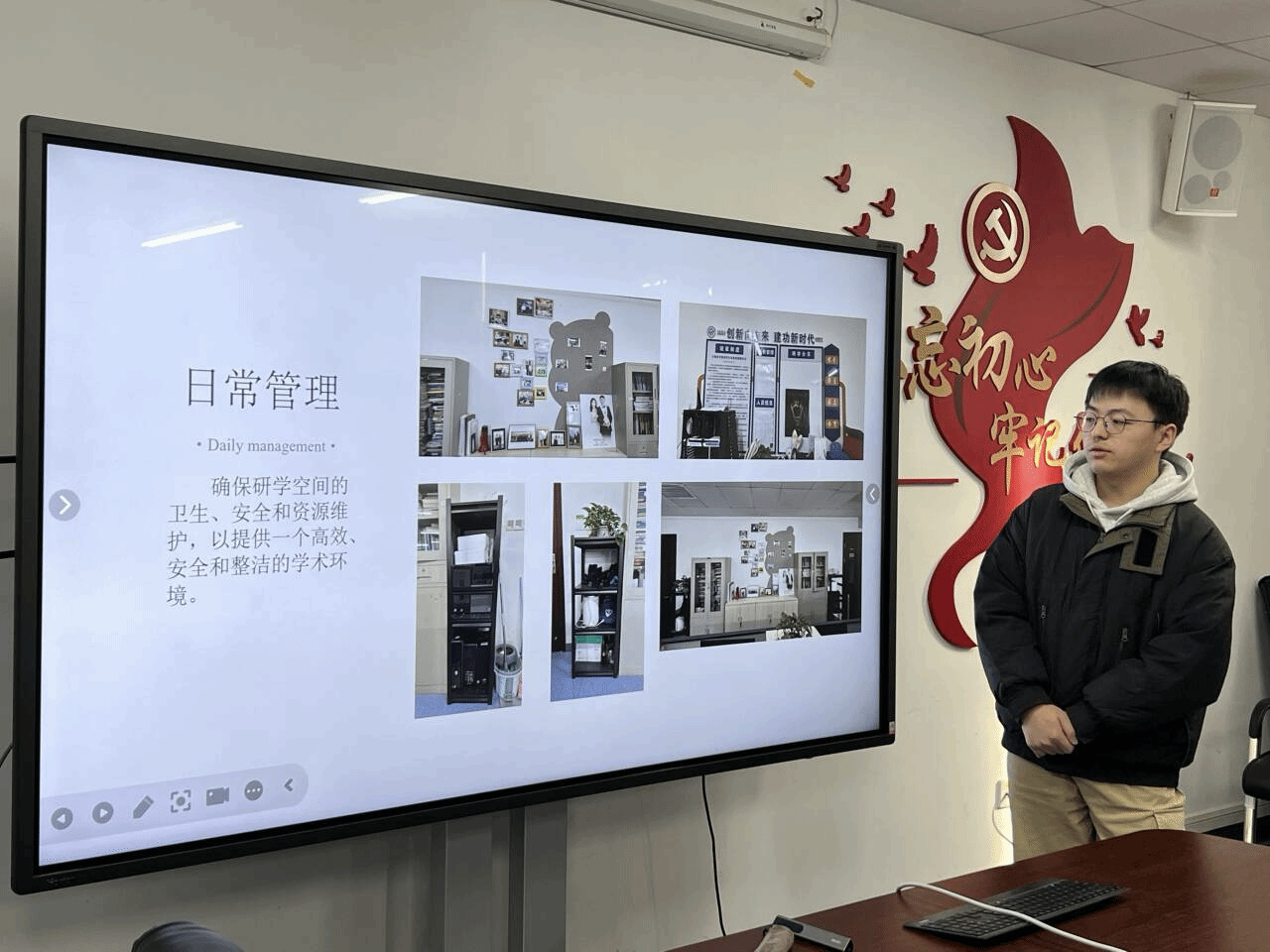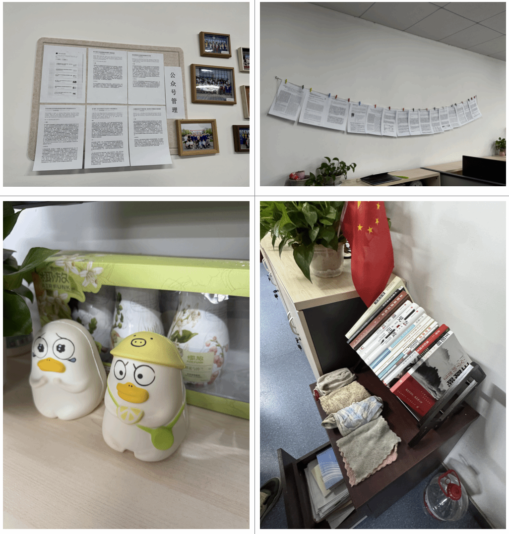 各实验室秉承着“花小钱办大事”的务实准则,充分考量同学们的意愿与利益诉求,通过线上投票方式广泛征求意见,购置物美价廉的置物架、电脑摆件、绿植、雨伞架、精美贴画与贴纸等物资,提升实验室氛围。同时,积极发动全体实验室成员齐心协力打造照片墙,凝聚团队力量,营造温馨和谐且富有活力的科研环境。